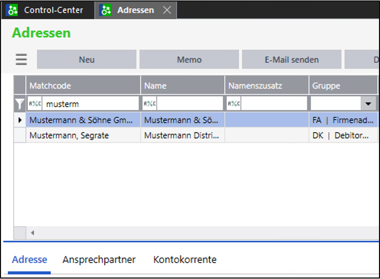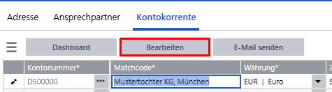 Im Adressenstamm können nach Auswahl eines Kunden im Unterreiter Kontokorrente über den Button Bearbeiten die Zolldaten eingegeben werden.