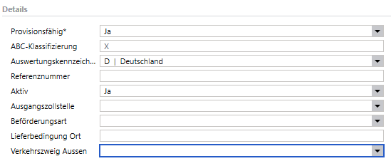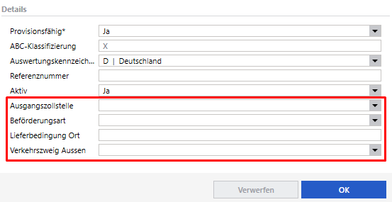 Die dort eingetragen Daten werden dann beim Erstellen eines Belegs direkt in die dortigen Zolldaten-Felder eingetragen. Sind im Kundenstamm keine Zolldaten hinterlegt, bleiben diese im Beleg leer und müssen dort vor dem Export gepflegt werden.