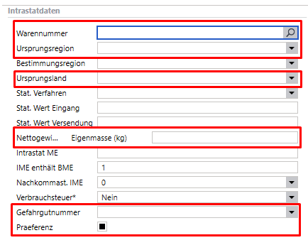 Sind diese Felder im Artikelstamm leer, so sind diese auch im Beleg leer und müssen dort ggf. vor dem Export gepflegt werden.