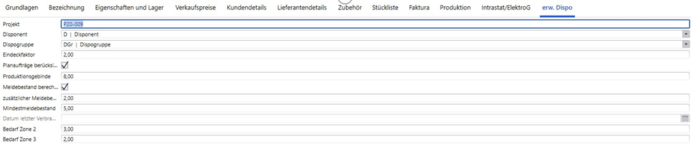Abbildung 1: Reiter “Erw. Dispo” im Artikelstamm