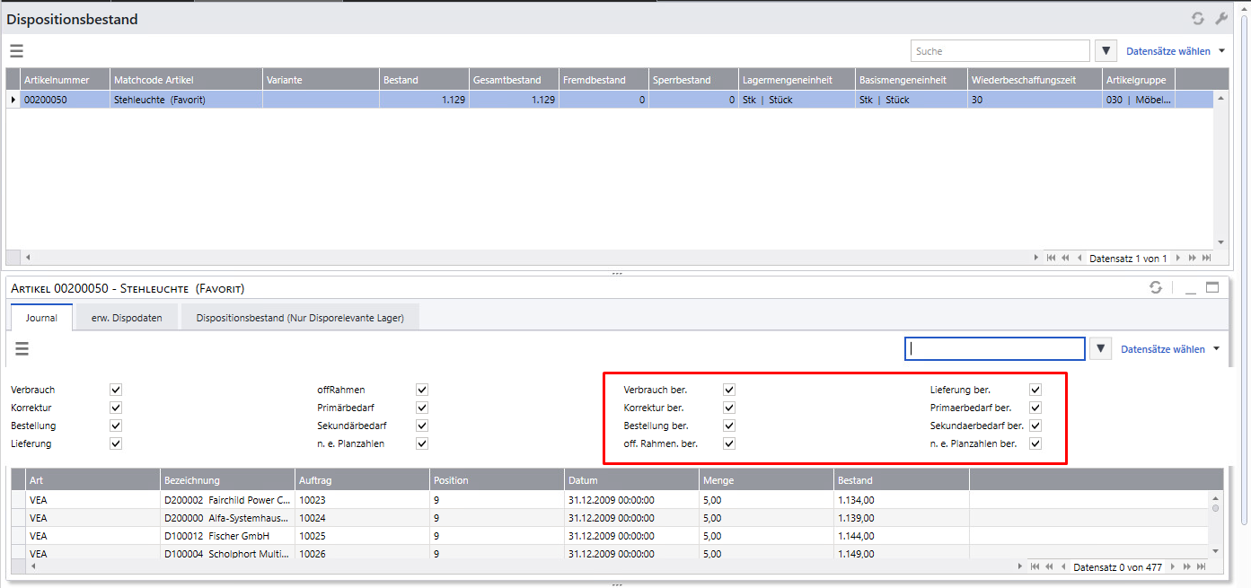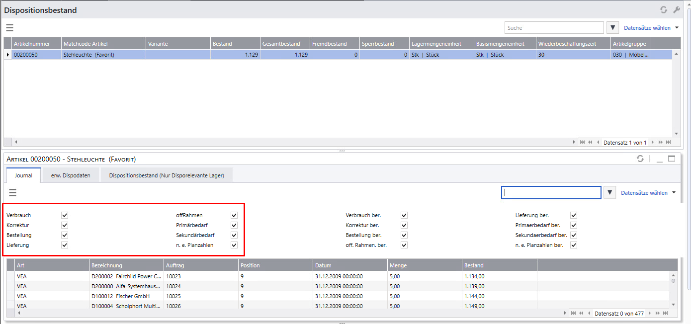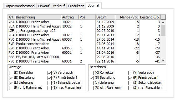Ein Journalsatz entsteht immer dann, wenn ein Beleg, ein Vorgang, oder eine Lagerbewegung eine Änderung des Dispobestands auslöst.