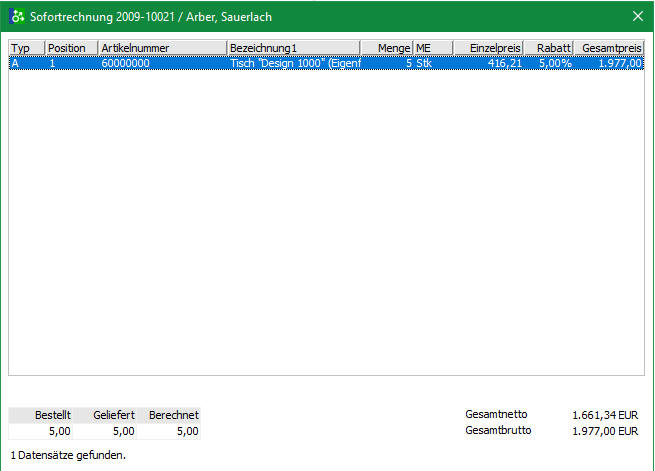 BE1 | Bestellung EK, bestätigt. Bei Artikelposition gibt es eine Bestellnummer | Lieferantennummer LieferantenMatchcode |