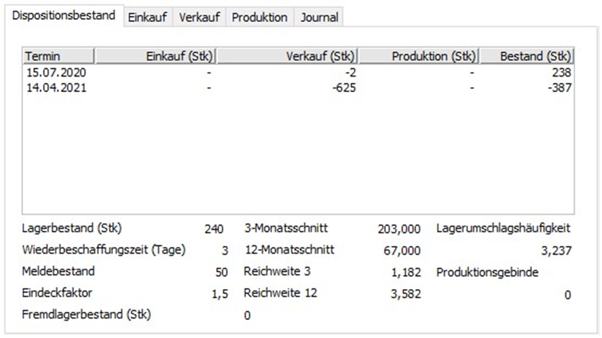 Reichweite 3 | Die Kennzahl gibt den Zeitraum an, in dem der Lagerbestand bei einem durchschnittlichen Materialverbrauch voll ständig aufgebraucht ist. Wird berechnet: aktuellen Lagerbestand / Verbrauch (3-Monatsschnitt) | |