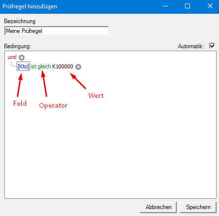 Hier legst Du im Feld Bezeichnung einen Namen für die Prüfregel fest.