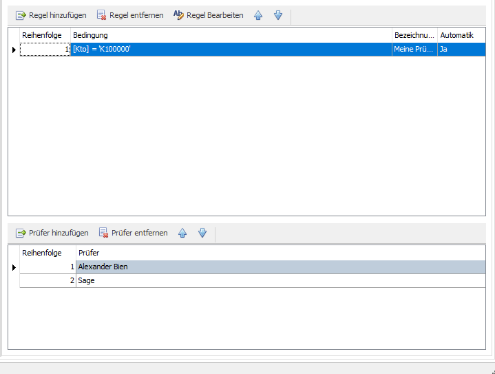 Speichere die Regel ab und hinterlege im unteren Bereich des Dialogs einen Prüfer bzw. eine Prüfergruppe.