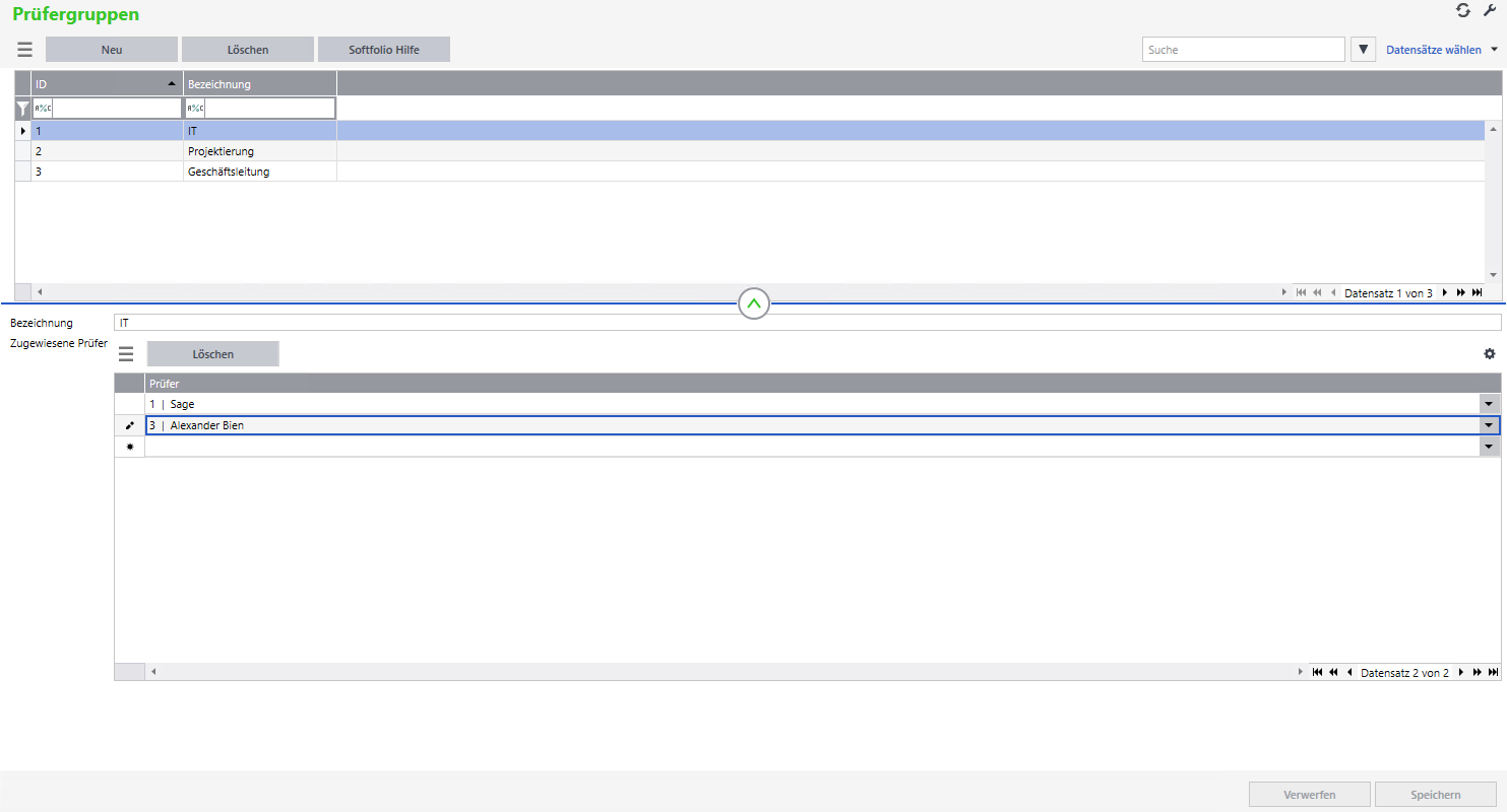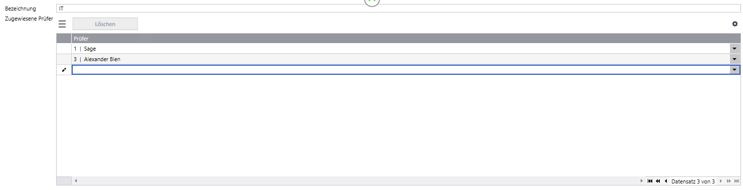 Bevor die Prüfer zugewiesen werden können, muss die Prüfergruppe/Bezeichnung gespeichert werden!