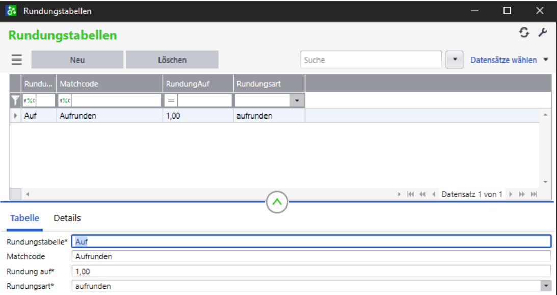Um die Rundungseinstellungen zu treffen sollte entweder die Spalte Rundung auf volle oder die Spalte Rundung auf verwendet werden.