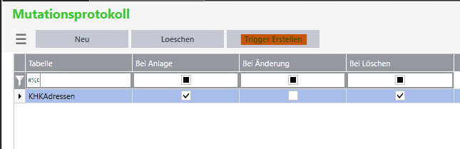 Trigger können für bereits abgespeicherte Tabellen eingestellt werden. Um die Protokollierung für Ihre Einstellung zu aktivieren, müssen Sie einen Trigger erstellen.