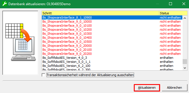 Aktualisierung der Datenbank (Bei Server Installation)