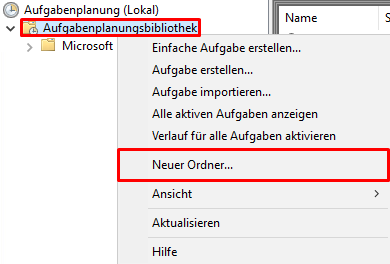 Öffne die Windows Aufgabenplanung, lege mit einem Rechtsklick unter Aufgabenplanungsbibliothek einen neuen Ordner an.
