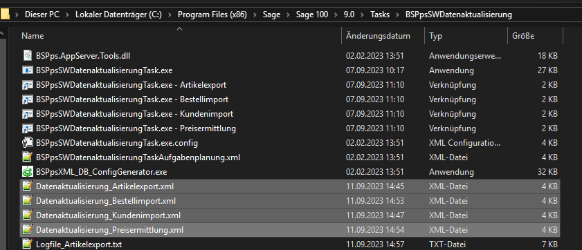 Pro Bereich steht dir im Verzeichnis C:\Program Files (x86)\Sage\Sage 100\9.0\Tasks\BSPpsSWDatenaktualisierung eine XML-Datei für den Import zur Verfügung: