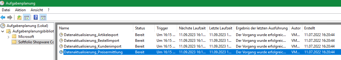 Anschließend können die Aufgaben im Aufgabenplaner für die Datenaktualisierung aktiviert werden.