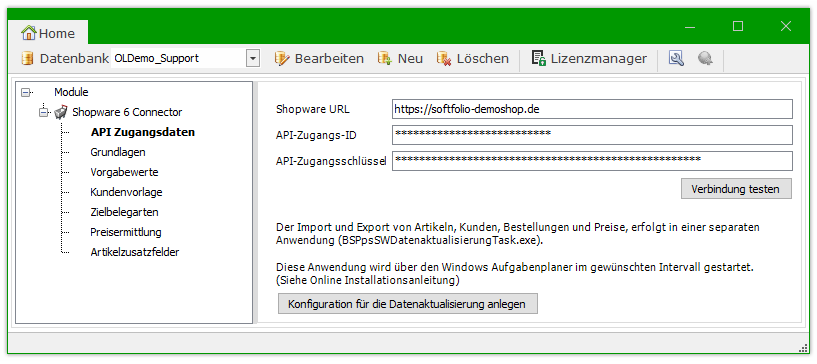 Die Datenaktualisierung ist eine externe Anwendung die sich um den Datenaustausch zwischen der Office Line und Ihrem Shopware-Webshop kümmert (Kunden, Artikel, Bestellungen und Preise)