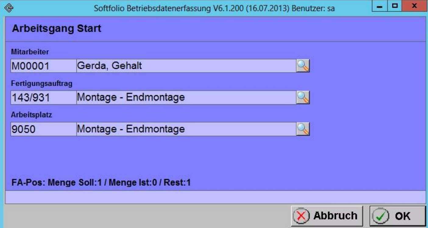 Wird der Arbeitsplatz manuell verändert. wechselt die Anzeige des Fertigungsauftrags von BelID/BelAGPosID auf BelID/BelPosID.