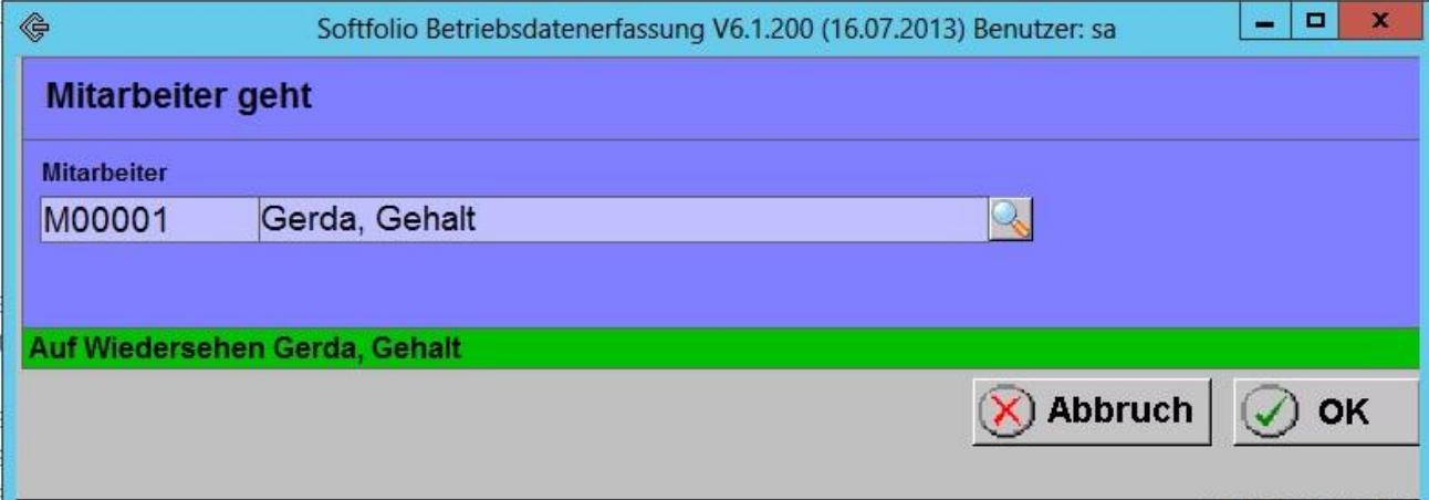 Über diesen Stempel können Sie einen Mitarbeiter als abwesend stempeln, allerdings benötigen Sie hierzu wieder die Mitarbeiternummer. Voraussetzung hierfür ist, dass dieser als anwesend gemeldet ist.
